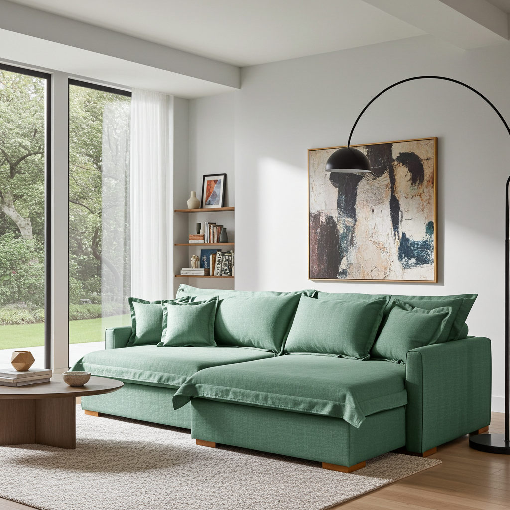 Sofá Cama Retrátil e Reclinável Living Bali em Linho Verde 2,18m